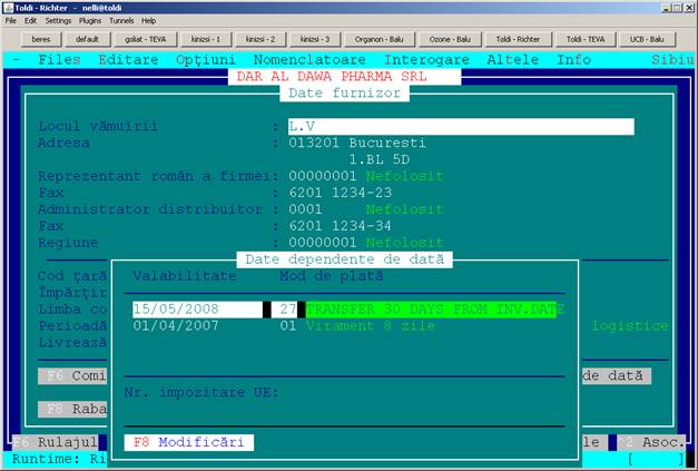 Cu pozitionarea pe numele oricarui furnizor cu f5 putem vizualiza produsele livrate de catre furnizor.