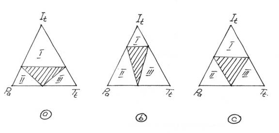 Legatura dintre cele trei proprietati se reprezinta grafic prin triunghiurile fiziologice in figura 4 unde :