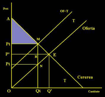 De asemenea surplusul producatorului scade (de la P'EQ' la PpNQt).