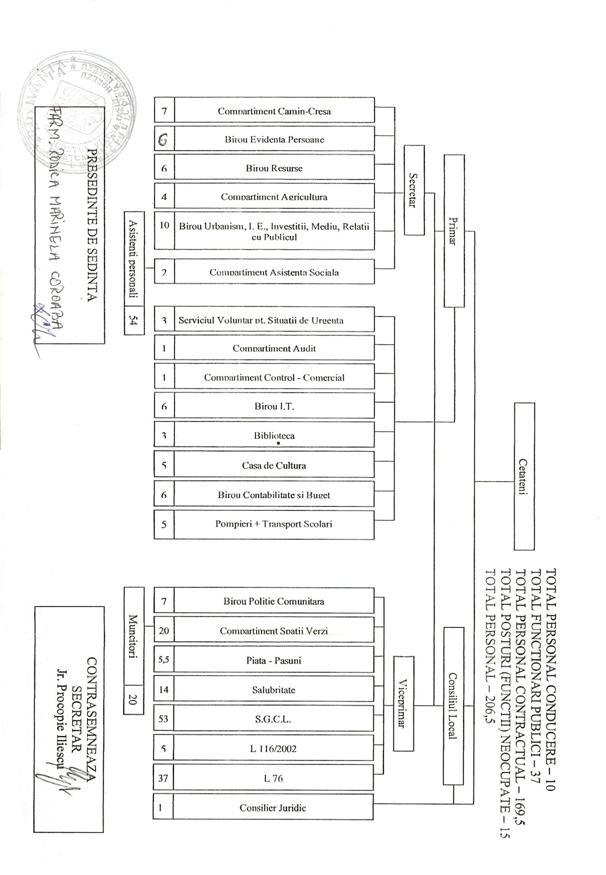 Principalele relatii institutionale ale administratiei locale se stabilesc cu Consiliul Judetean si Prefectura Judetului, cu structurile descentralizate ale Guvernului la nivel local precum si cu regii nationale sau judetene care asigura anumite servicii