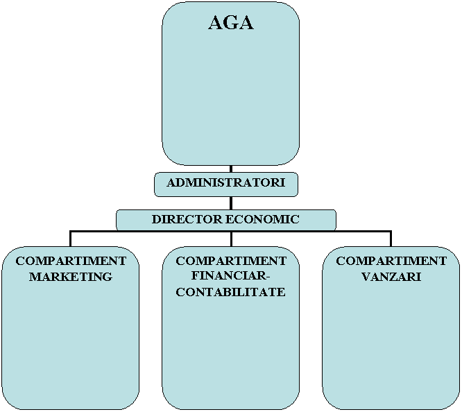 Organul suprem de conducere a societatii este Adunarea Generala a Actionarilor ( AGA) care are loc o data pe an si are dreptul de a hotari asupra oricarei modificari privind Actul Constitutiv, structura organizatorica a societatii, contractarea de imprumuturi bancare si acordarea de garantii, numeste si revoca administratorul societatii stabilindu-i drepturile, competentele, raspunderile, salariul si deasemeni de al actiona in justitie pentru pagubele aduse societatii, numind persoana competenta in vederea exercitarii, aproba bilantul de lichidare stabilind modul in care se distribuie si repartizeaza activul .