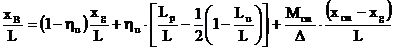 Relatia (6.83) permite aprecierea preliminara a abscisei centrului de carena, in cazul navelor de transport marfuri uscate cu compartimentul de masini in treimea pupa. Marimile xB, xg1, si xcm se introduc cu semnul lor (sunt marimi algebrice), iar xCM se considera fara semn.