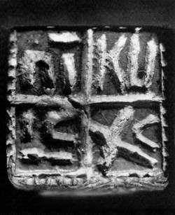 Al doilea isi afirma stiinta de carte nu numai prin grafia perfecta si atenta cizelare a literelor; prin suportul independent, ca patru placi de postament, a fiecarei grupe de litere; prin eleganta funiei, ce imbratiseaza cele 4 placi, cu trup reliefat si distinct de baza care margineste intreaga pecete a agnetului; ci mai ales prin semnul de prescurtare, liniuta de abreviere, trasa deasupra literelor IC si XC (fig.nr.6, cap.IV), semn ignorat de nestiutorii de carte, care incresteaza literele nu numai neuniform, ci chiar gresit: in fig. nr.10 ultima litera, A, este scrisa cu picioarele in sus, ca litera V, insasi ornamentatia trupului pecetarului fiind simpla si naiva - cateva segmente liniare, cruci si icsuri.