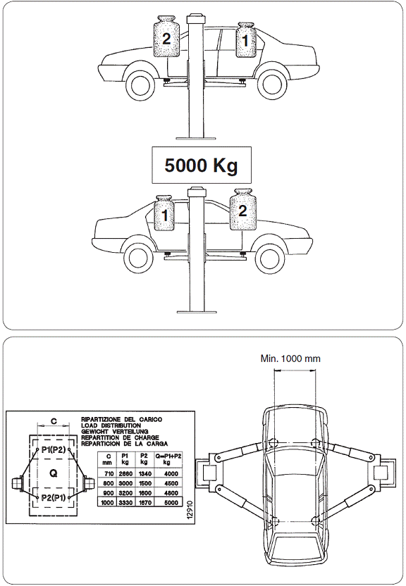 bratele se vor pozitiona la punctele prevazute pe autovehicul. Inaintea ridicarii verificati stabilitatea vehiculului. In timpul miscarilor in sus sau in jos verificati punctul de suport al sarcinii;