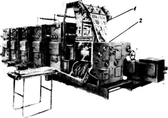 Fig.10.. Masina ofset plano-cilindrica. 1-forma de tipar plana, 2- cilindru intermediar.