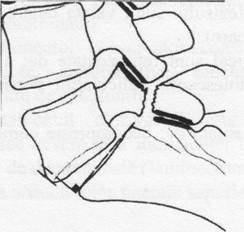 In hernia de disc lombara, nucleul pulpos ajunge in canalul vertebral, fie impingand posterior fibrele ligamentului longitudinal posterior, fie dilacerandu-1 si agresioneaza radacina spinala corespunzatoare.