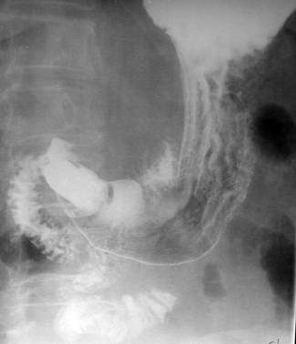 Fig. 2 - stomac in repletie completa, examen in ortostatism