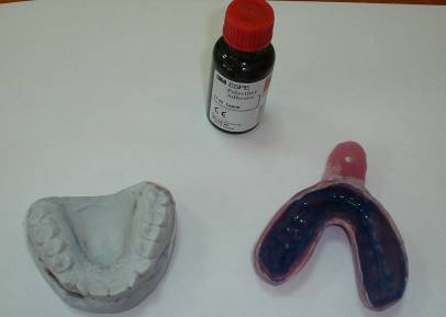 - s-a folosit rasina compozit autopolimerizabila( Fill In- Keer), care s-a incarcat in amprenta situatiei initiale,(ulei de parafina) si s-a repus pe campul protetic, asteptandu-se priza materialului.