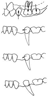 Daca ne imaginam un ax virtual trecand prin punctul de sprijin al unui incisiv superior, perpendicular pe axul longitudinal al radacinii, dintele va avea in cursul forfecarii tendinta sa pivoteze in jurul acestui ax.