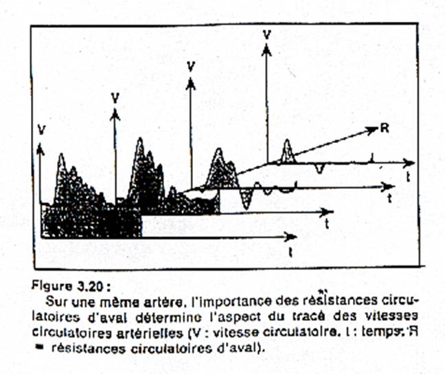 Viteza de curgere a singelui este modulata de trecerea undei arteriale, dar in amonte de o ocluzie totala unda arteriala ajunge pina la obstacol si este reflectata, in timp ce in lumenul arterial nu mai exista componenta axiala de curgere sanguina.