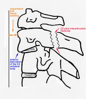 De asemenea se poate observa un fragment osos anterior si superior de corpul vertebral, precum si linia de fractura.