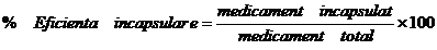 Eficienta de incapsulare poate fi calculata raportand cantitatea de medicament incapsulat la cantitatea de medicament total, conform urmatoarei ecuatii U. D. Shivhare L. N. Ramana, 2010