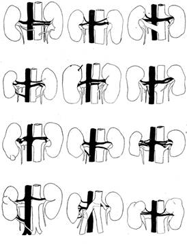 prezenta arterei renale unice pe o parte si a unor artere renale