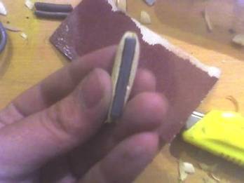 Doua lovituri de cutit de a sublinia forma de hartie abraziva si apoi de munca de la 80 pana cand veti obtine o forma vag asemanator unei plevusca: