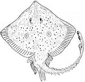 In Marea Neagra, cea mai comuna specie este Dasyatis pastinaca, pisica de mare (fig. 169), care poate atinge 2 m lungime. La aceasta, inotatoarea dorsala este inlocuita cu 1-2 spini lungi, zimtati, care au la baza o glanda veninoasa.