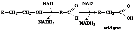 a) oxidarea terminala conduce la formarea acidului gras corespuzator, trecand prin aldehida: