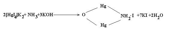 Principiul metodei: amoniacul formeaza cu reactivul Nessler un complex colorat in galben de iodura de oximercur-amoniu ce se poate colorimetra.