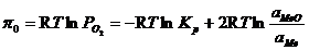 Cand Me si MeO sunt substante in stare pura sau in solutie saturata aMeO = aMe = 1, sistemul este monovariant (l = Ci + 2 - f = 2 + 2 - 3 = 1) si deci: