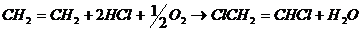 b. Al doilea procedeu din acest grup de procedee consta in oxiclorurarea etilenei folosind drept agent de oxidarea aer sau oxigen. Se obtine intermediar 1,2-dicloretan cu o mare selectivitatea conform reactiei :