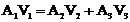 Consideram volumul de control ca in fig. , unde fluidul inra prin sectiunea 1 si iese prin sectiunile 2 si 3. Conform ecuatiei de continuitate, debitul masic de fluid care intra in volumul de control este egal cu cel care iese, adica: