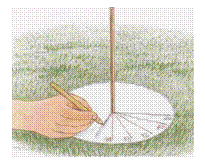 pozitia umbrei se schimba odata cu variatia pozitiei Soarelui. Miscarea aparenta a Soarelui depinde de rotatia Pamantu1ui; umbra care se roteste cu regularitate in jurul batului demonstreaza ca Pamantul se roteste cu o viteza constanta. Ceea ce ati construit este un ceas solar, un instrument folosit in trecut pentru masurarea timpului si care poate fi observat si azi pe peretii caselor vechi sau in unele piete antice.