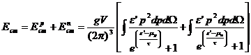 Pentru energii peste 0.4 A GeV, in sistemul laboratorului, distributia Fermi-Dirac poate fi aproximata de o distributie Maxwell-Boltzmann. Introducand functiile Macdonald, Kj, se poate scrie urmatoarele ecuatii pentru numarul de protoni si energia protonilor in sistemul centrului de masa: