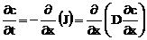 unde J este fluxul de difuzie, care reprezinta cantitatea de substanta a unui component aflat in solutie sau in amestec intr-un solvent, care traverseaza perpendicular unitatea de suprafata, in unitatea de timp, datorita unui gradient de concentratie c/ x. Semnul negativ indica deplasarea atomilor din zonele de concentratie ridicata spre cele cu concentratie scazuta. Coeficientul de difuzie D are unitatea de masura m2/s.