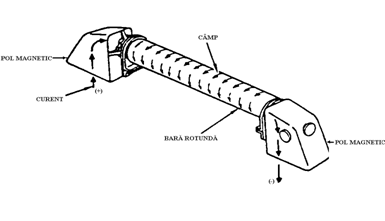 Cand un curent electric este trecut printr-o bobina, directia principala a fluxului este parala cu axa longitudinala a bobinei. Liniile individuale de forta din jurul fiecarui segment al conductorului interactioneaza cu fluxul campului adiacent pentru a produce un camp de flux puternic in jurul si prin bobina. Daca inseram un o tija feromagnetica in centrul bobinei fluxul campului devine mai puternic in tija. Slaba reluctanta a tijei forteaza mai multe linii de forta sa se stabilizeze. Aceasta o numim magnetizare longitudinala. Campul magnetic este in lungimea specimenului. Puterea campului magnetic este direct proportionala cu intensiatea curentului, cu numarul de spire si proprietatile magnetice ale specimenului.