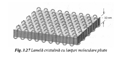 sunt separate de materialul amorf. Lanturi moleculare de legatura realizeaza conexiunea dintre lamele adiacente prin masa amorfa. Cu cat creste gradul de cristalinitate al structurii semicristaline, cu atat se maresc rigiditatea, rezistenta si termostabilitatea polimerului.