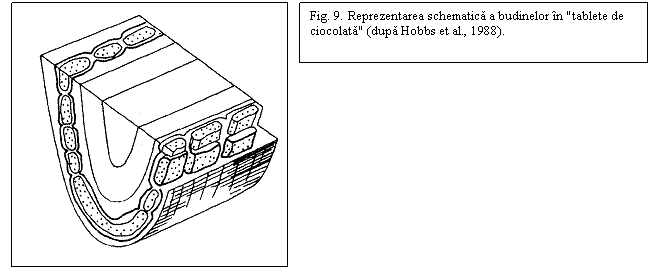 frecvente sunt budinele de forma cilindrica; Wegman (1932) a descris si budine in forma de tablete de ciocolata (fig. 9).