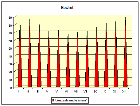 Astfel, Bechet,Craiova, Calafat si Bailesti au valori multianuale ale umezelii aerului de circa 79%, spre deosebire de Drobeta Turnu-Severin unde media multianuala abia depaseste 73%.