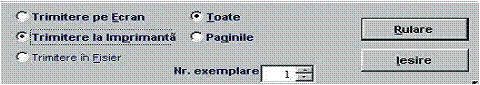 A doua optiune "Trimitere la Imprimanta"este optiunea de listare efectiva a listlor sau rapoartelor dorite. Aceasta mai contine si urmatoarele optiuni prezentate in figura 5:
