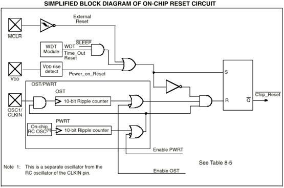 Observatie: Cu aceste doua timere incorporate, PWRT si OST, majoritatea aplicatiilor nu au nevoie de circuit extern de reset.