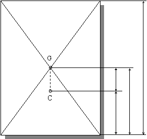 Un element deosebit de important pentru perceperea corecta a imaginii/compozitiei este "centrul atentiei" sau "centrul optic" al paginii, notat cu C in figura Acesta nu coincide cu centrul geometric al formatului, G, fiind situat la circa 1/3 de la marginea inferioara a paginii.