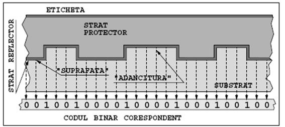 Fig.3 Structura unei piese de CD, cu dispunerea "adanciturilor" si suprafetelor