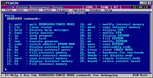 Debugger-ul va permite incarcarea, executia si depanarea unui program aplicatie, utilizind un set de comenzi de depanare/trasare.