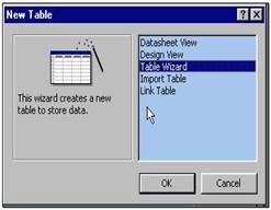 Fig. 14.a- Selectia modului 'Table Wizard'.