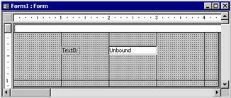 Daca se executa dublu-click pe elementul Create form in Design view, se afiseaza fereastra Form Design (etapa a 2 - a), fara a se baza pe o sursa de date.