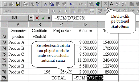 calculelor) si se activeaza butonul AutoSum prin dublu-click;