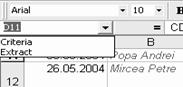 Numele Extragere (Extract) indica rezultatul filtrarii anterioare si este generat numai daca se realizeaza o filtrare avansata cu extragerea liniilor selectate in afara listei.