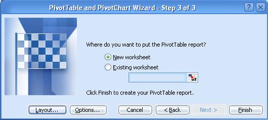 optiunea Options (din meniul PivotTable de pe bara sinonima) sau din pasul 4 al wizard-ului PivotTable.