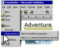Tipariti cu usurinta publicatia la imprimanta dvs. desktop sau pregatiti fisierele pentru imprimerie. Noul Pack and Go Wizard incarca fisierele pe mai multe dischete pentru a fi transportate usor.