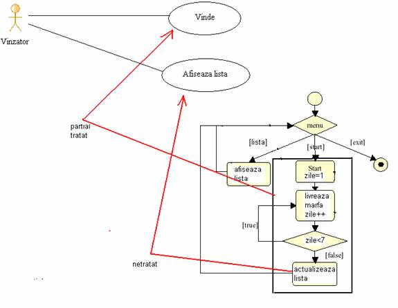 Pentru ca trebuie sa existe coerenta intre diagramele construite, este util in aceasta faza sa verificam legatura intre cazurilor de utilizare descrise in Fig.1 si componentele din diagrama de activitati (Fig.2).