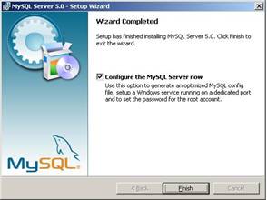 Pas 5. Se bifeaza optiunea Configure the MySQL Server now si se apasa FINISH
