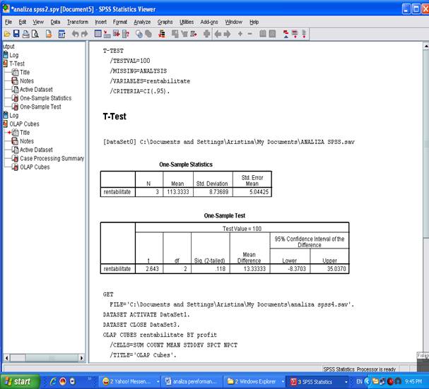 In caseta Test variable(s) am selectat variabila rentabilitate iar in caseta Test value am trecut valoarea 100.