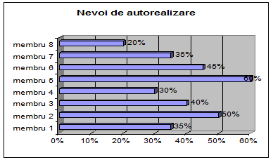 Potrivit teoriei motivationale bazate pe nevoi, singurele nevoi care raman motivatoare sunt cele de pe ultimul nivel, de ordin superior, cele de autorealizare, care, pe masura ce sunt satisfacute, ele devin tot mai motivante. Dar, in procesul motivarii nu se poate trece la satisfacerea unor nevoi de pe un nivel superior (nevoi de autorealizare, nevoi de stima si apreciere, nevoi de apartenenta) pana cand cele de nivelurile inferioare (nevoi de securitate, nevoi fiziologice) nu au fost satisfacute. Nivelul de importanta acordat de fiecare membru pentru cele 5 nevoi este urmatorul?