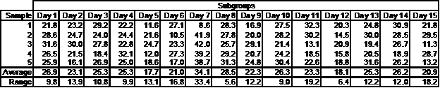 Datele initiale, 15 subgrupe de marimea n = 5, se gasesc