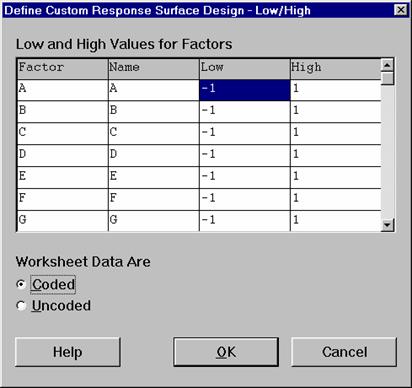 Selectati: Stat > DOE > Response Surface > Analyze Response Surface Design.