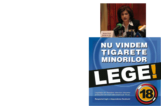 Philip Morris International sustine legile privind varsta minima legala pentru a preveni vanzarea tigaretelor catre minori. Sustinem semenea legi in tarile in care acestea nu exista. In Romania este interzisa vanzarea produselor din tutun catre minori. O.G. 55/1999; legea 151/2000, art.2.O clauza speciala in ceea ce priveste comercializarea produselor din tutun este introdusa in licenta de vanzare a magazinelor ce comercializeaza produse din tutun.