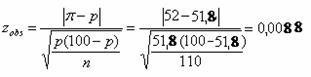 Pentru interpretarea rezultatelor testǎrii ipotezei statistice, comparǎm valoarea t = 57,1 reprezinta valoarea raportului critic tobs, existand un numar de 109 grade de libertate (df = n-1). Fiind vorba despre un test bilateral, aceastǎ valoare se compara cu valoarea din tabelul legii de distributie T-Student t0,05;119=1,96 (valoarea pentru nivelul de semnificatie =0.05 in cazul testului bilateral). Se oservǎ cǎ tobs=57,1> t0,05;119=1,96, prin urmare putem garanta cu o probabilitate de 95% ca la nivelul populatiei cercetate procentul celor care au o pǎrere bunǎ cu privire la imaginea dobanditǎ de Distrigaz este diferit de 40%, deci se acceptǎ H1
